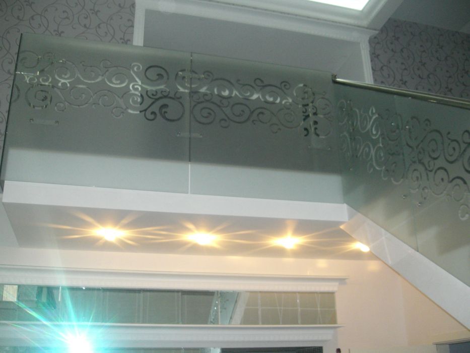 Перила » Со стеклом » ограждение нерж заполнение стекло ограждение нерж заполнение стекло Для увеличения кликните по фото. Ограждение из нержавеющей стали, стекло закалённое #10 мм. с нанесением рисунка, стекло крепится на выносных держателях, чтобы скрыть торец лестничного марша. Стоимость от 18000 руб. м/п.